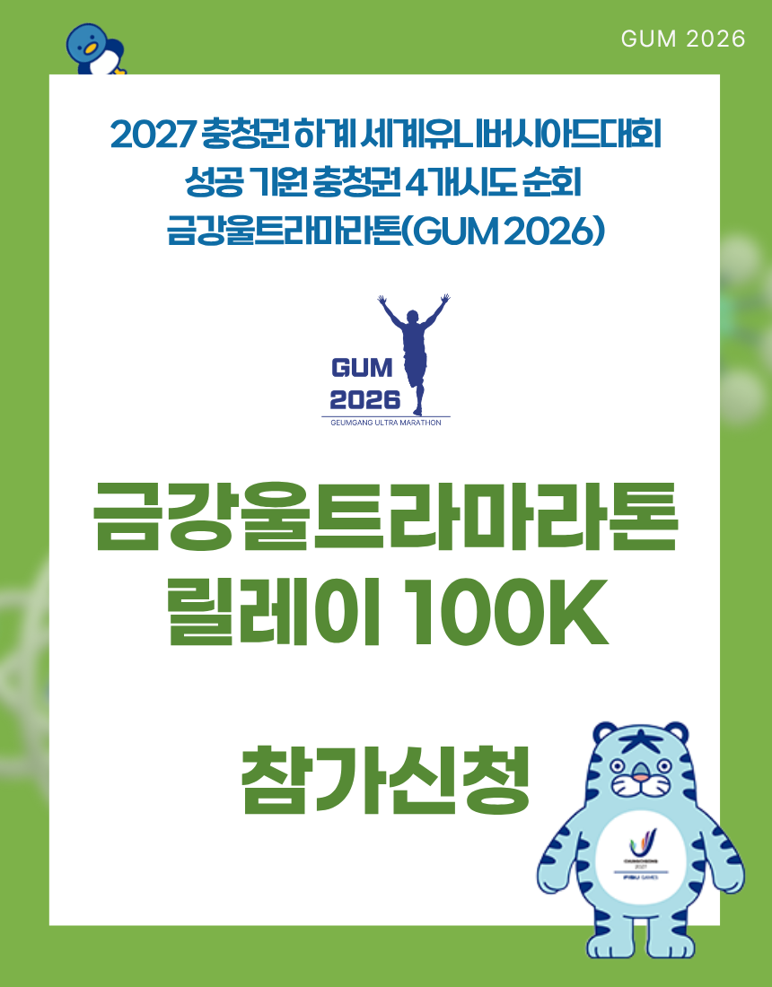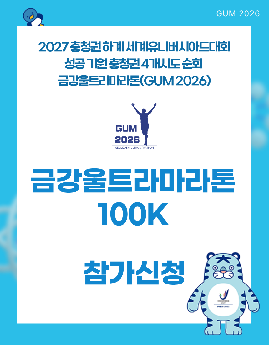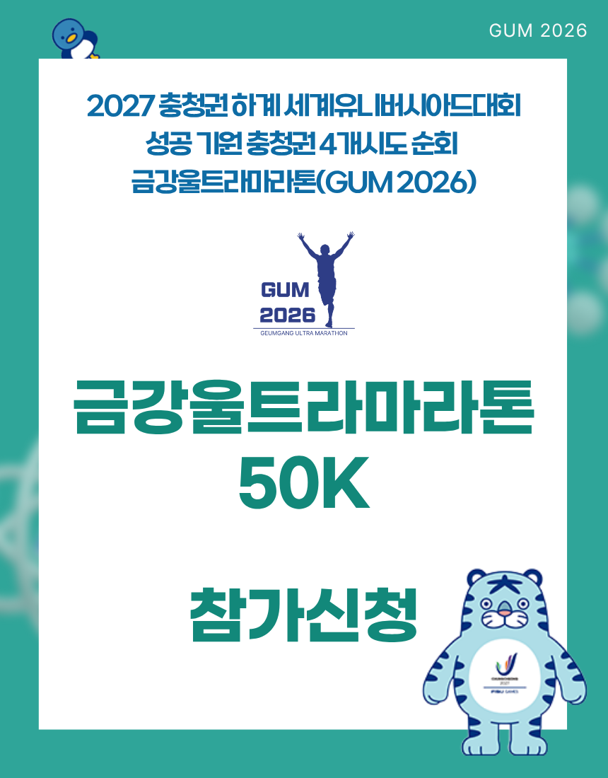 제1조 (목적) 본 규정은 '2027 충청권 하계 세계유니버시아드대회 성공 기원 금강울트라마라톤대회'(이하 "본 대회"라 한다)의 원활한 진행과 참가자의 안전, 공정한 경기 운영을 목적으로 한다.